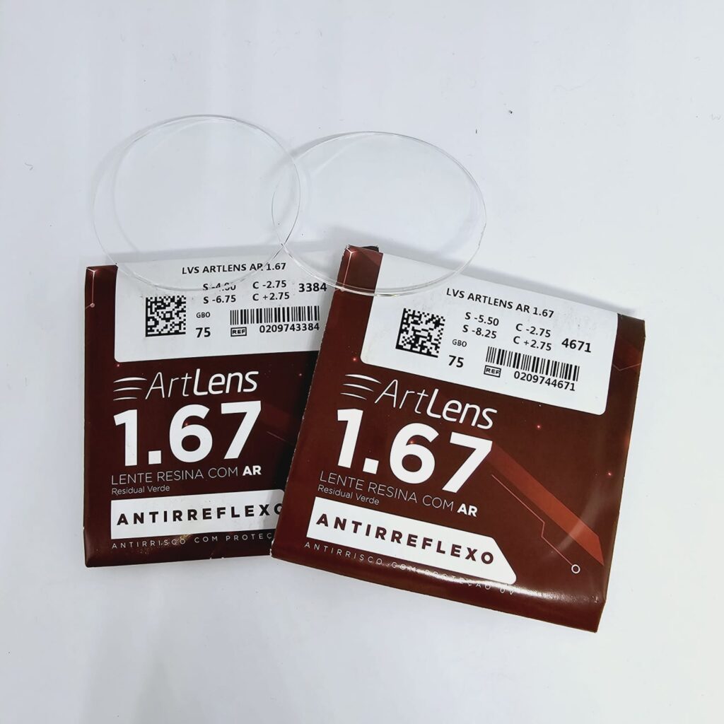 Lente monofocal Orgânica índice 1,67 asférica anti-reflexo com filtro azul